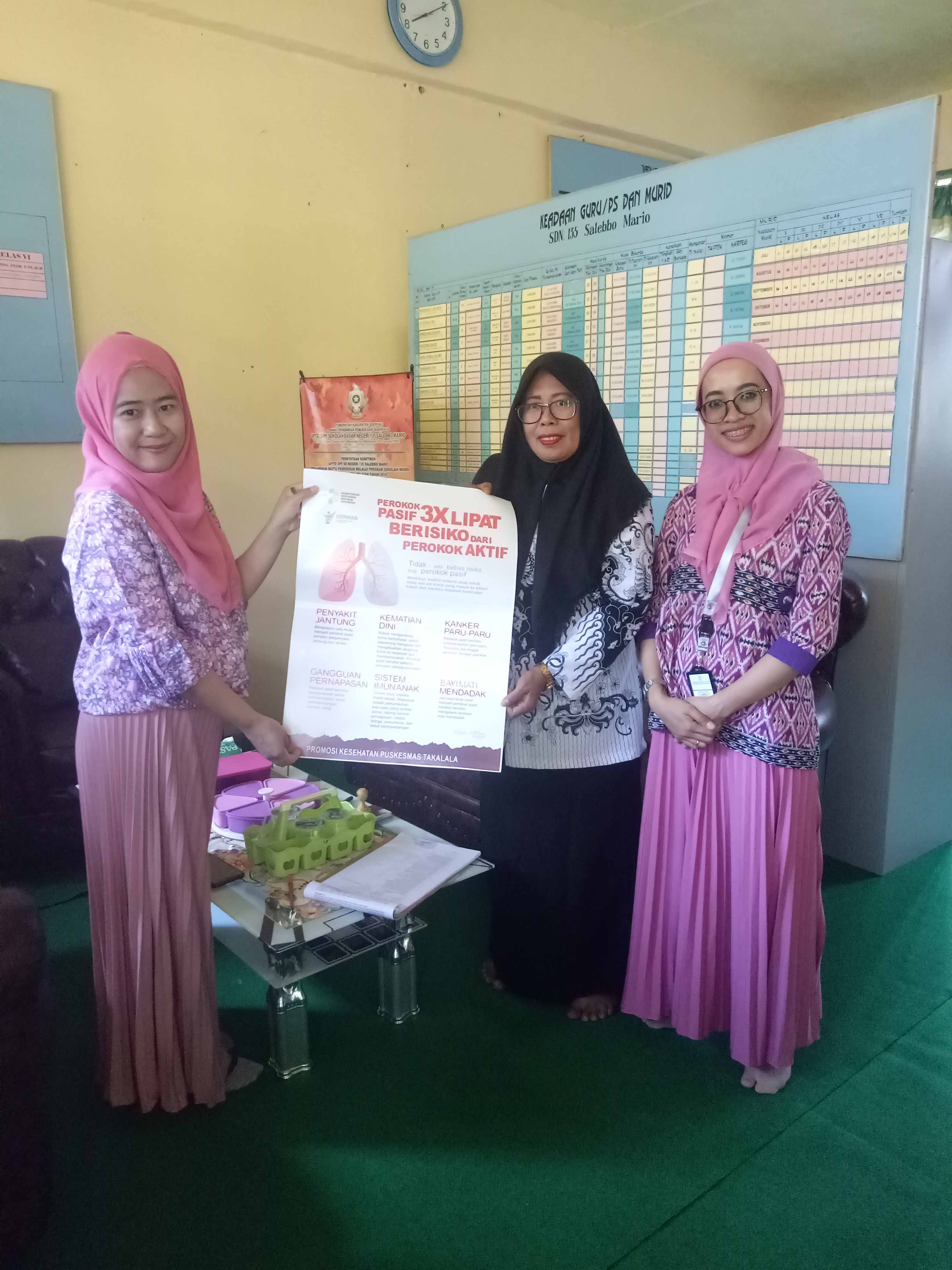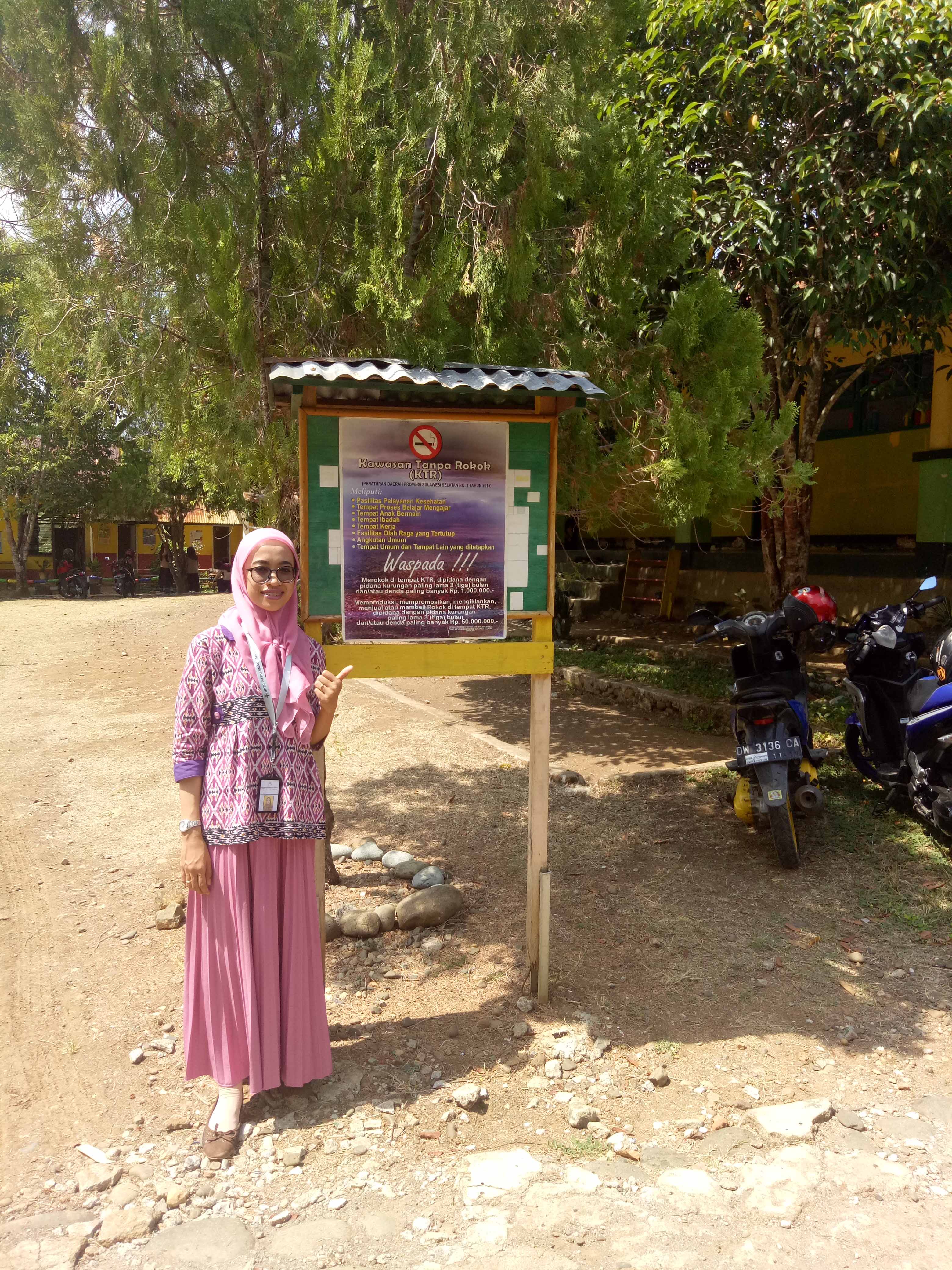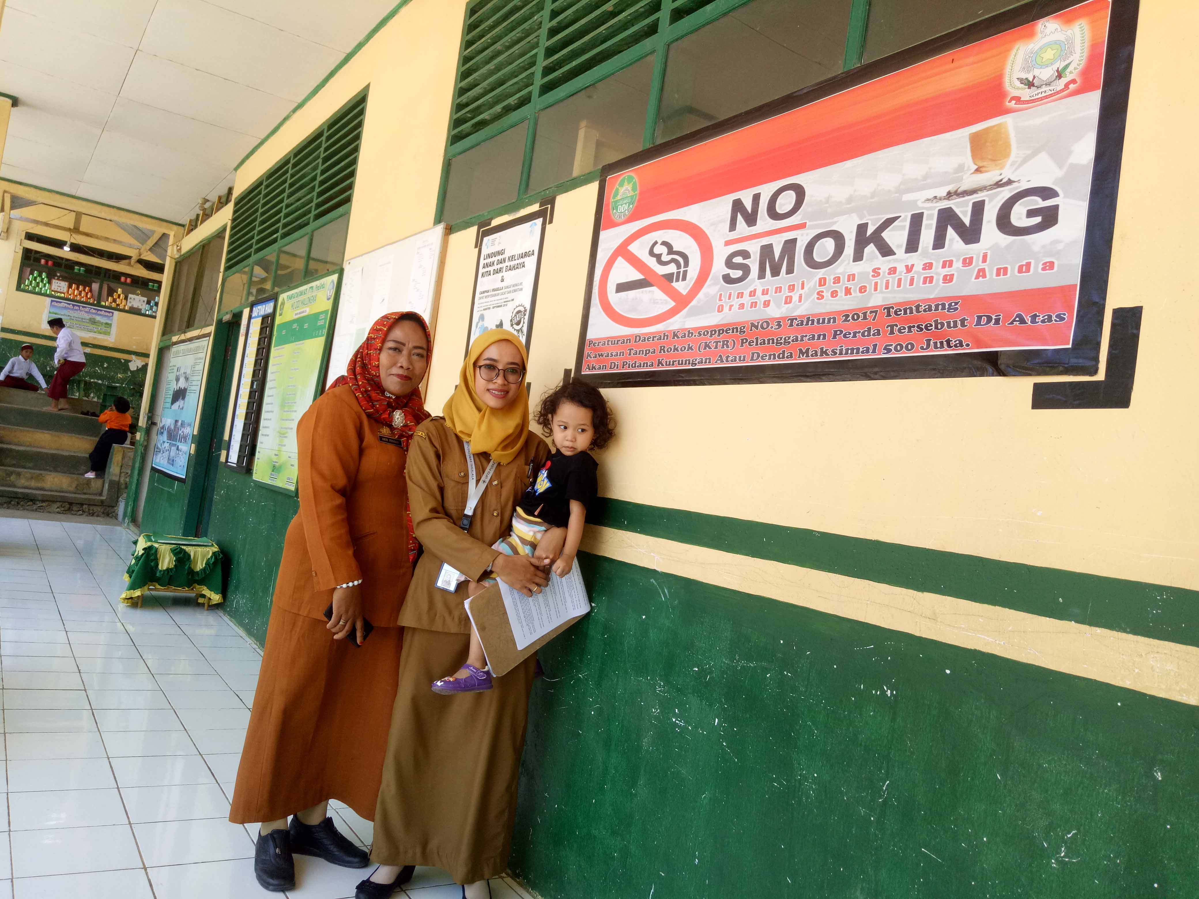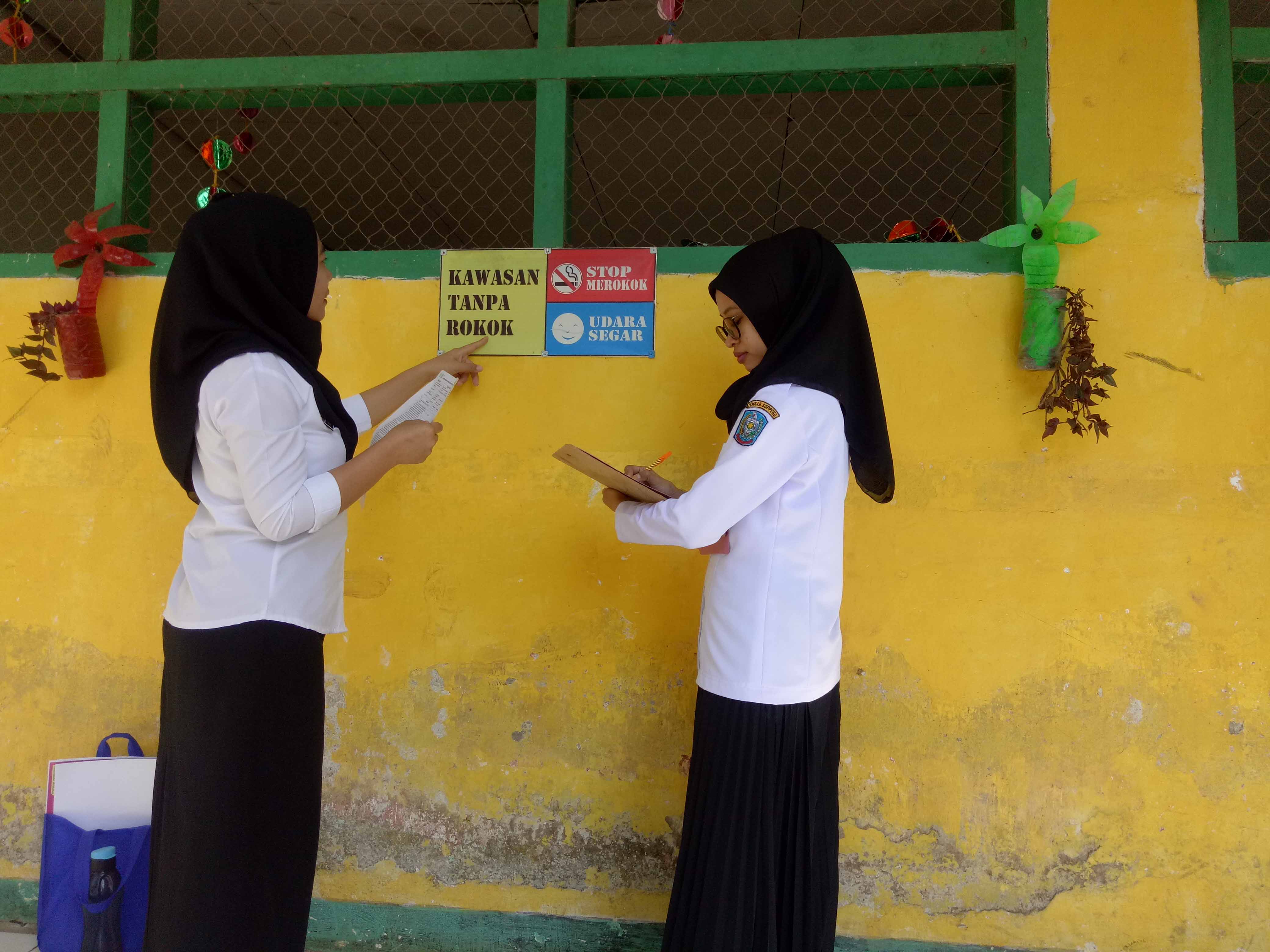 TAKALALA, SOPPENG – Sebagai wujud tindak lanjut kegiatan Sosialisasi Kawasan Tanpa Rokok (KTR) di Sekolah dan Kantor pada tanggal 9 September 2019 lalu, maka tim tenaga pelaksana pemantauan Kawasan Tanpa Rokok UPTD Puskesmas Takalala yang terdiri dari Petugas Penyakit Tidak Menular (Andi Risva Elya Pramita, S.Kep.Ns) dan Petugas Promosi Kesehatan (Rusnah, SKM) turun langsung ke 29 sekolah (TK, SD/sederajat, SMP/MTS/sederajat, SMA/SMK sederajat) se-wilayah UPTD Puskesmas Takalala secara sidak (tanpa pemberitahuan) guna melakukan pemantauan implementasi KTR. Dalam pelaksanaannya, ditemukan beberapa sekolah telah menerapkan implementasi KTR sesuai yang diharapkan termasuk telah memilki SK Tim pengawasan KTR tingkat sekolah, namun sekitar 55% (16 sekolah) belum menerapkan implementasi KTR dengan baik karena masih ditemukan puntung rokok, orang yang merokok, dan orang/kantin sekolah yang menjual rokok di lingkungan sekolah.