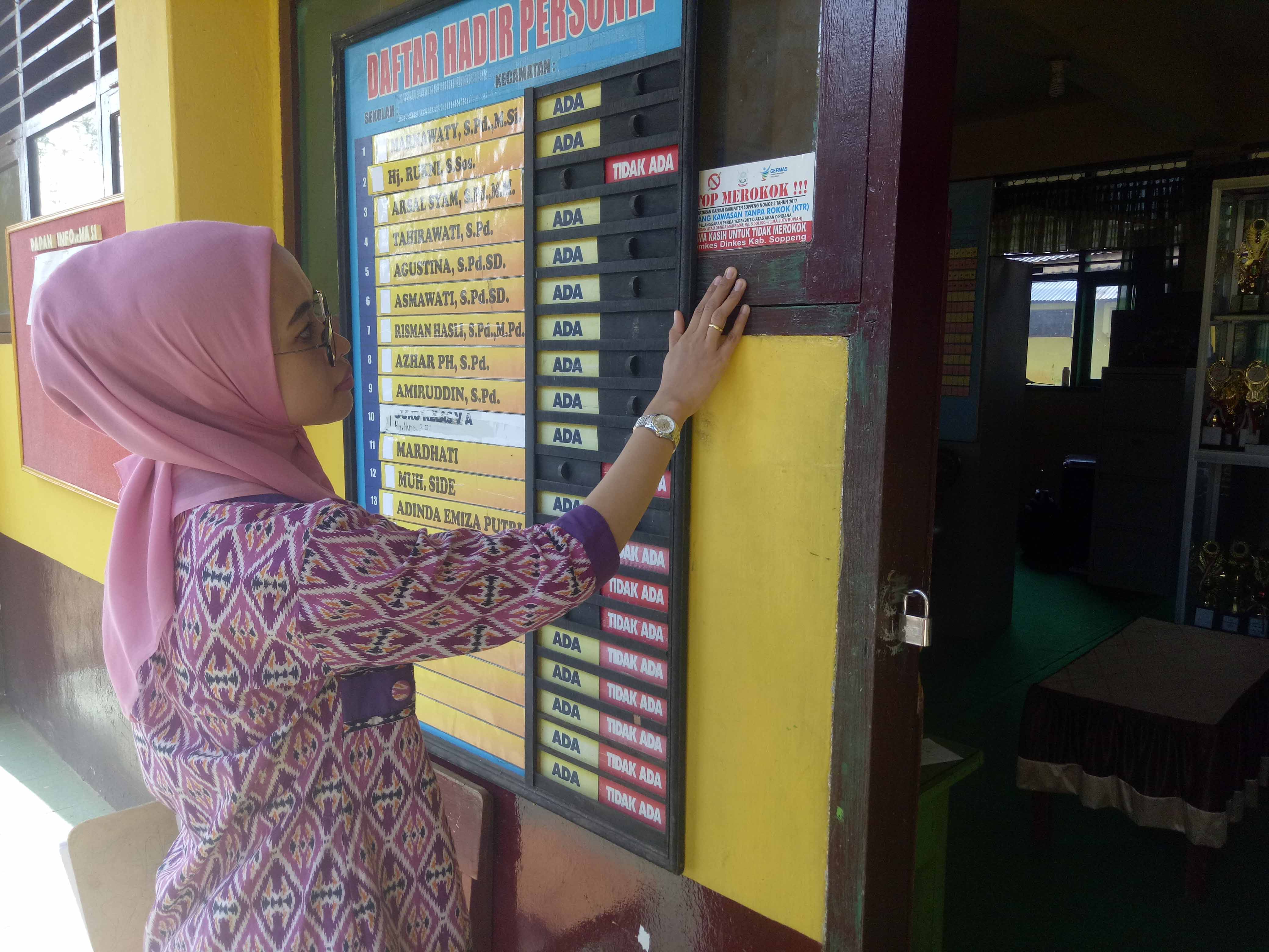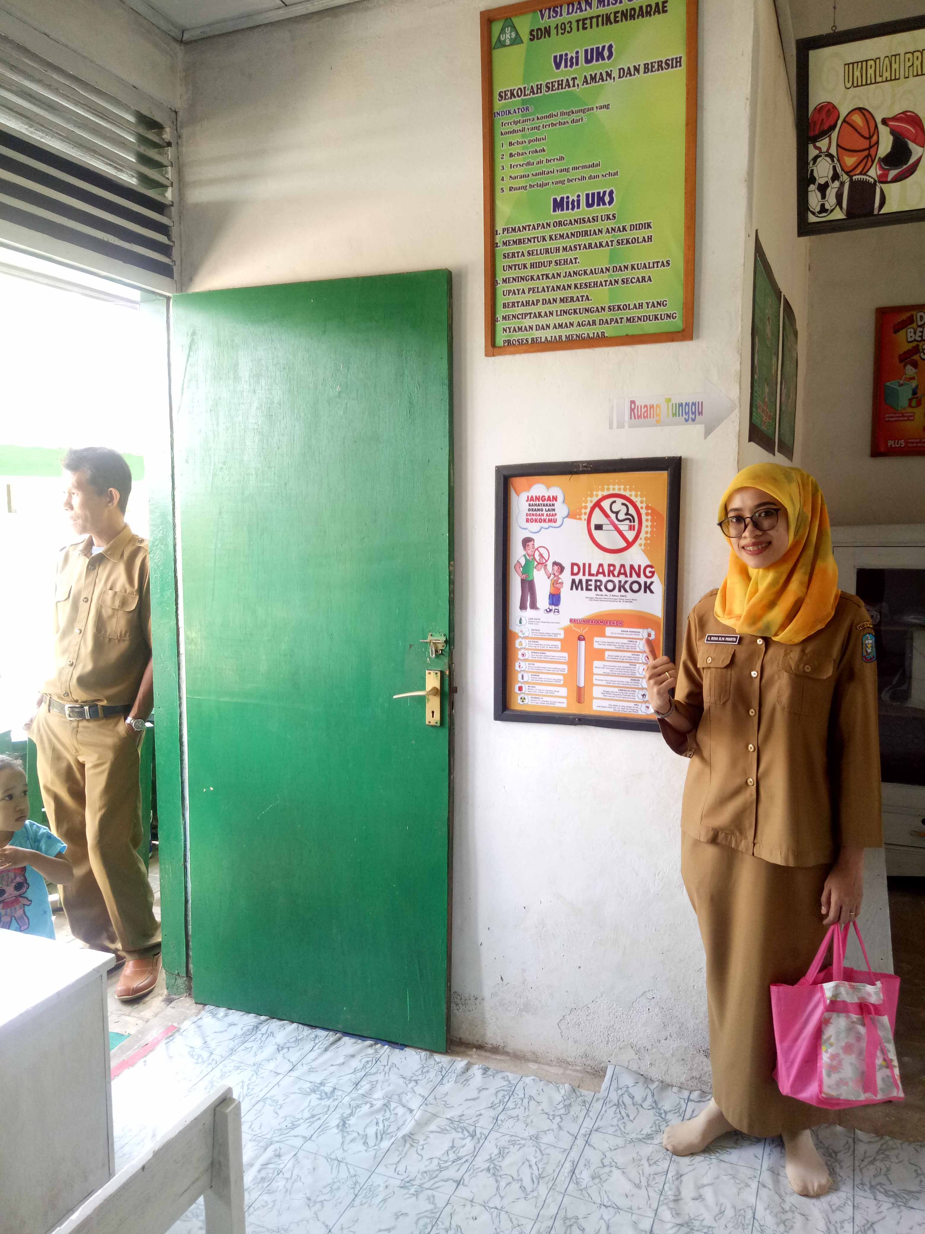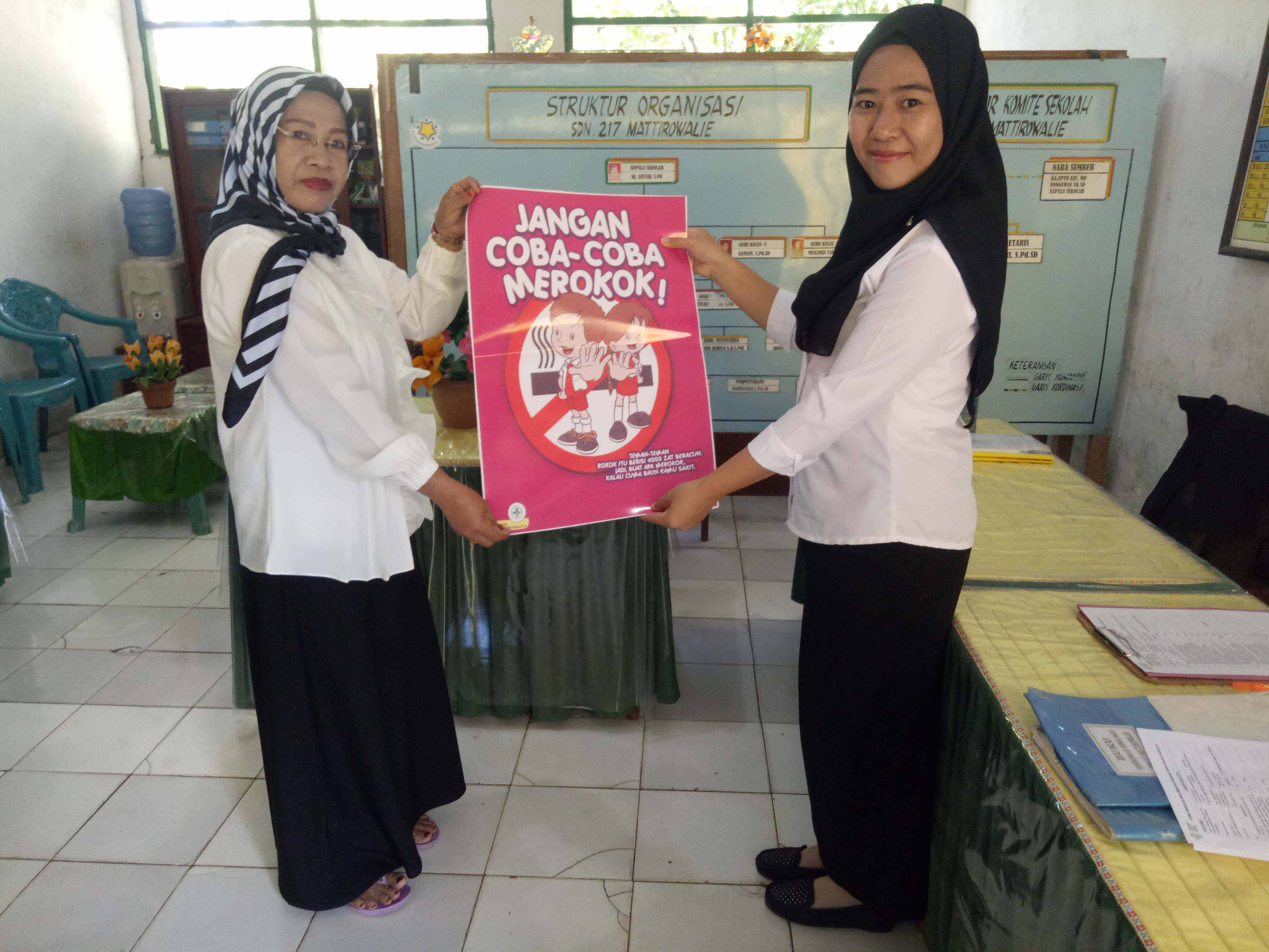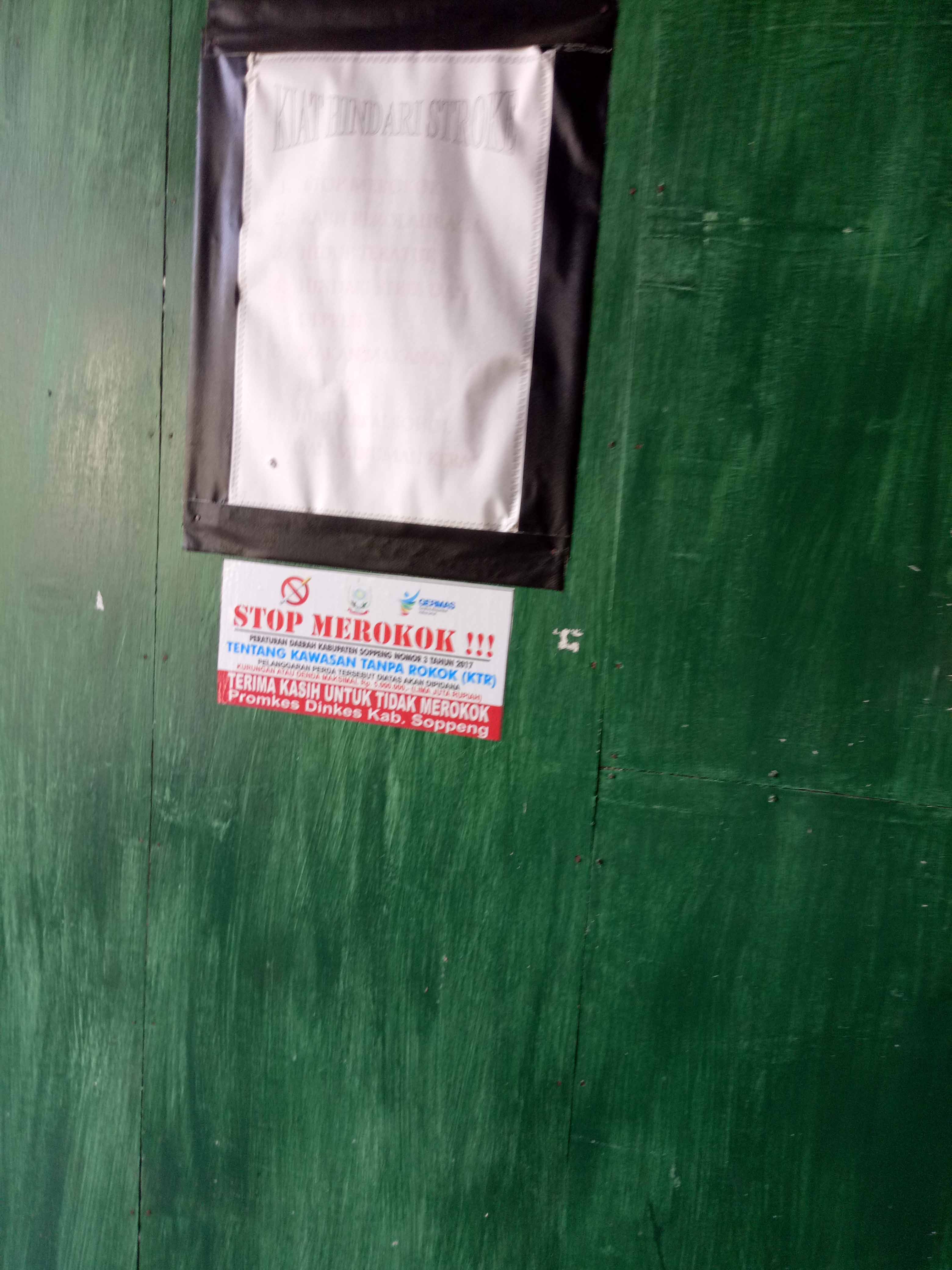 TAKALALA, SOPPENG – Sebagai wujud tindak lanjut kegiatan Sosialisasi Kawasan Tanpa Rokok (KTR) di Sekolah dan Kantor pada tanggal 9 September 2019 lalu, maka tim tenaga pelaksana pemantauan Kawasan Tanpa Rokok UPTD Puskesmas Takalala yang terdiri dari Petugas Penyakit Tidak Menular (Andi Risva Elya Pramita, S.Kep.Ns) dan Petugas Promosi Kesehatan (Rusnah, SKM) turun langsung ke 29 sekolah (TK, SD/sederajat, SMP/MTS/sederajat, SMA/SMK sederajat) se-wilayah UPTD Puskesmas Takalala secara sidak (tanpa pemberitahuan) guna melakukan pemantauan implementasi KTR. Dalam pelaksanaannya, ditemukan beberapa sekolah telah menerapkan implementasi KTR sesuai yang diharapkan termasuk telah memilki SK Tim pengawasan KTR tingkat sekolah, namun sekitar 55% (16 sekolah) belum menerapkan implementasi KTR dengan baik karena masih ditemukan puntung rokok, orang yang merokok, dan orang/kantin sekolah yang menjual rokok di lingkungan sekolah.