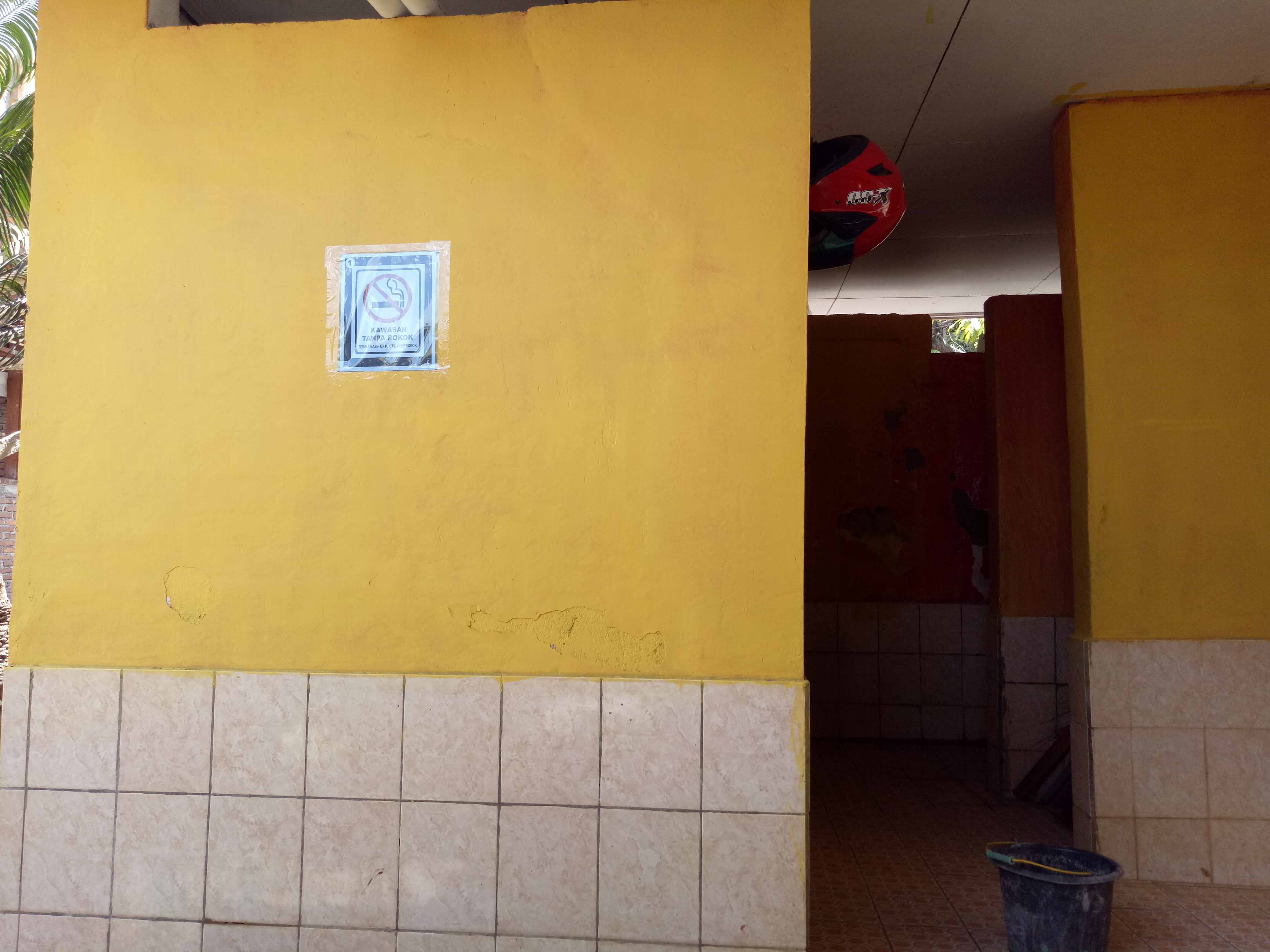 1) Terkendala dari kondisi sekolah yang belum memiliki pagar sehingga orang luar bebas masuk ke lingkungan sekolh dan merokok,
