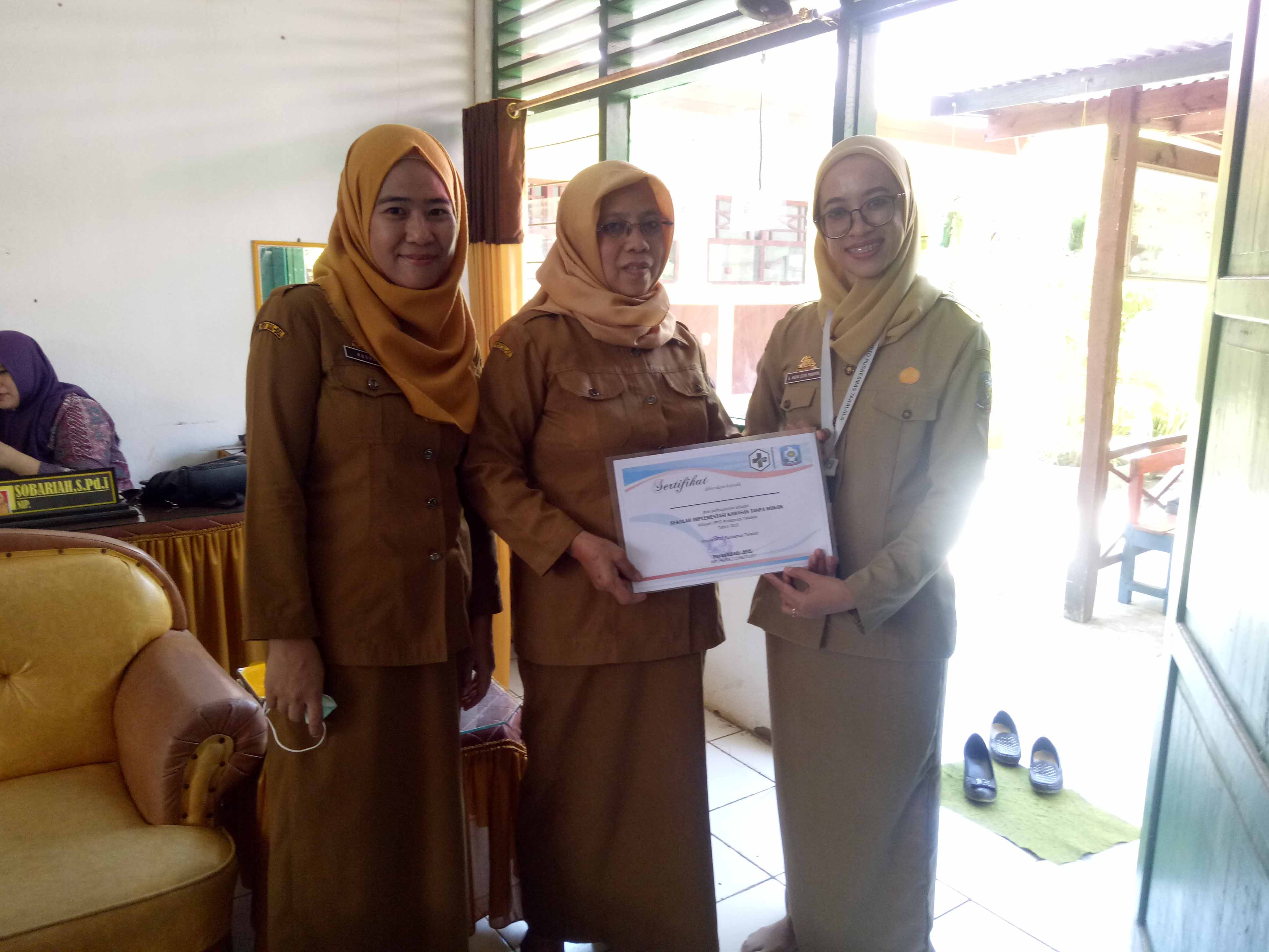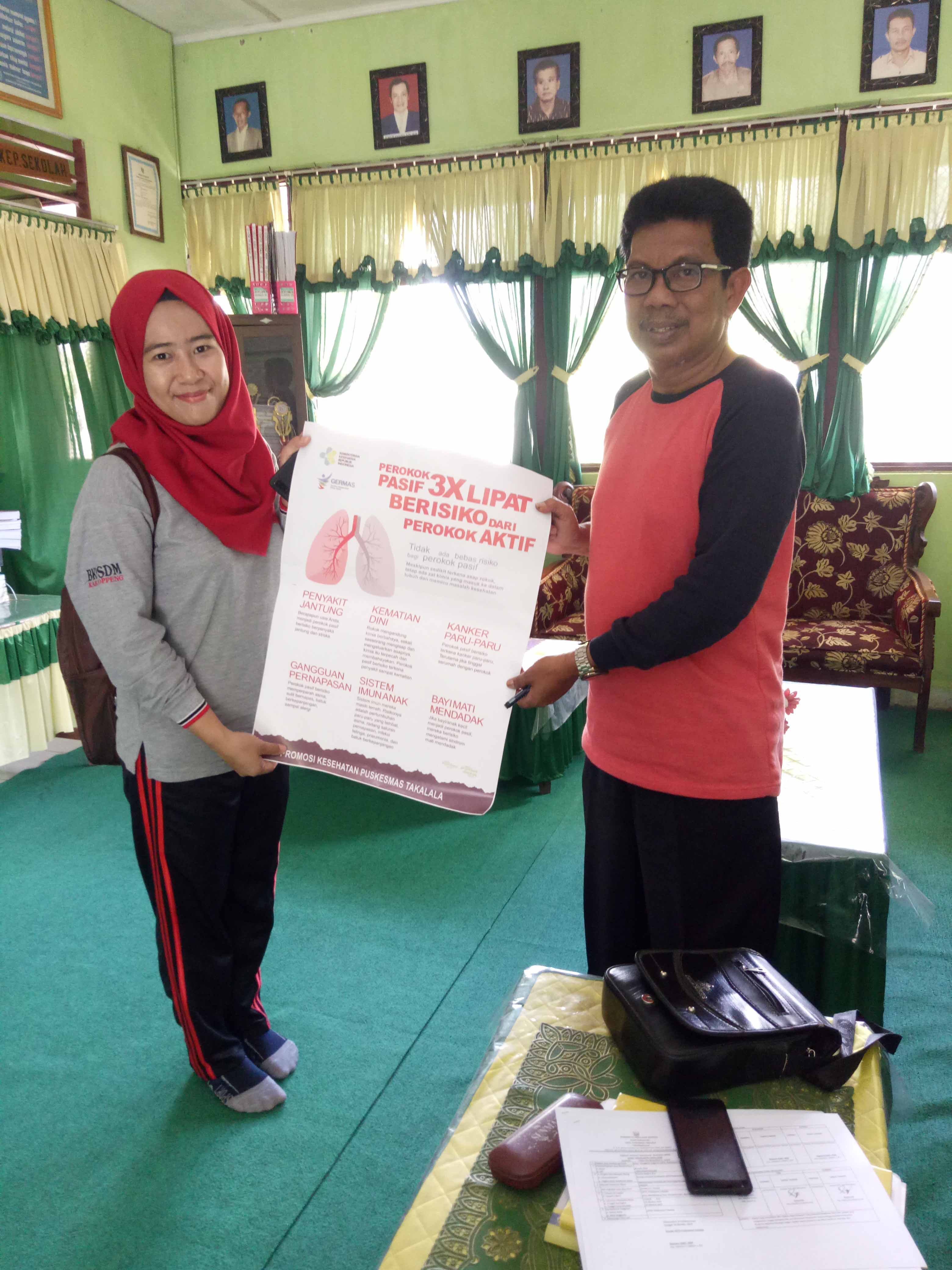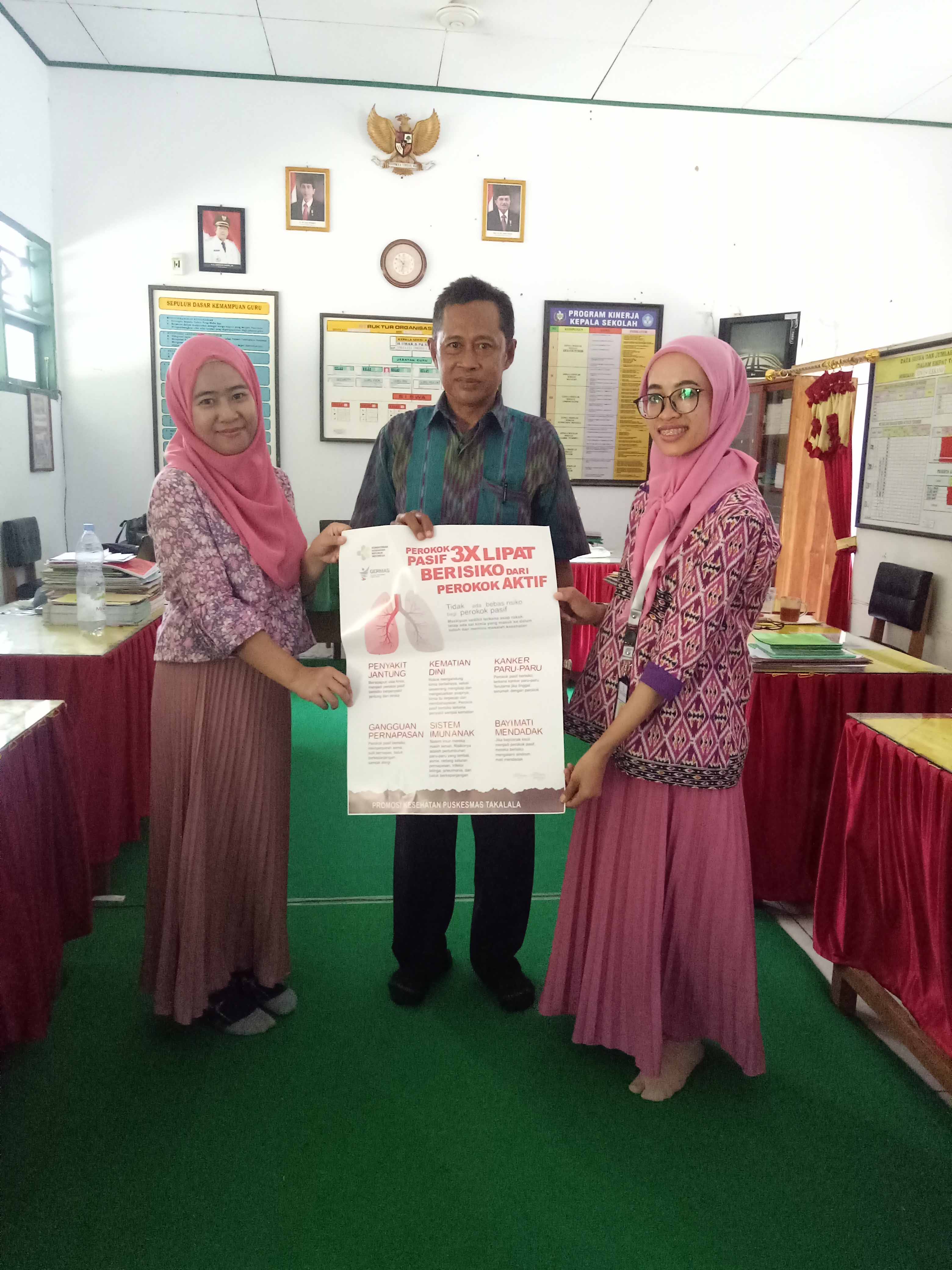 Disamping itu, bagi sekolah yang telah mengimplementasikan KTR di lingkungan sekolahnya, sebagai wujud apresiasi dari UPTD Puskesmas Takalala memberikan penghargaan dalam bentuk SERTIFIKAT yang di tandatangani oleh Kepala UPTD Puskesmas Takalala, Bapak Maesara Kadir, SKM dan selanjutnya diberikan kepada sekolah impementasi KTR sebanyak 13 Sekolah (45%).